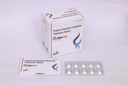 Composition:-Trypsin 96 Mg + Bromelain 180 Mg +Rutoside Trihydrate 200 Mg Packing:-10*1*10 Form:-Tablet
